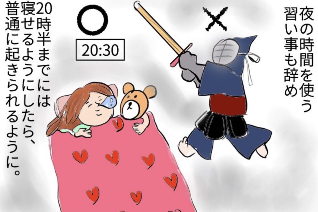 早い時は20:00、遅くても20:30までに布団に入られるようにすると