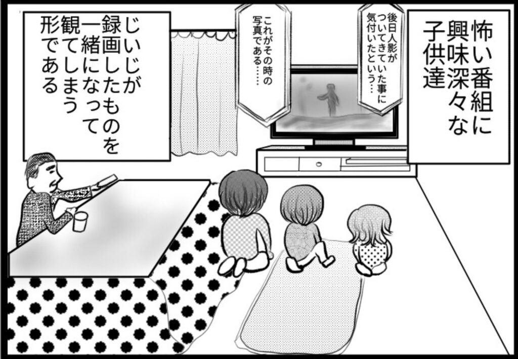 (怖い番組が苦手な長女は早々に自分の部屋へと引き上げているため登場なし)
