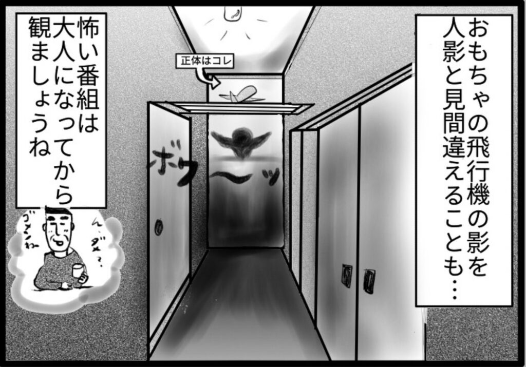 なんでもない影をオバケだと勘違い。