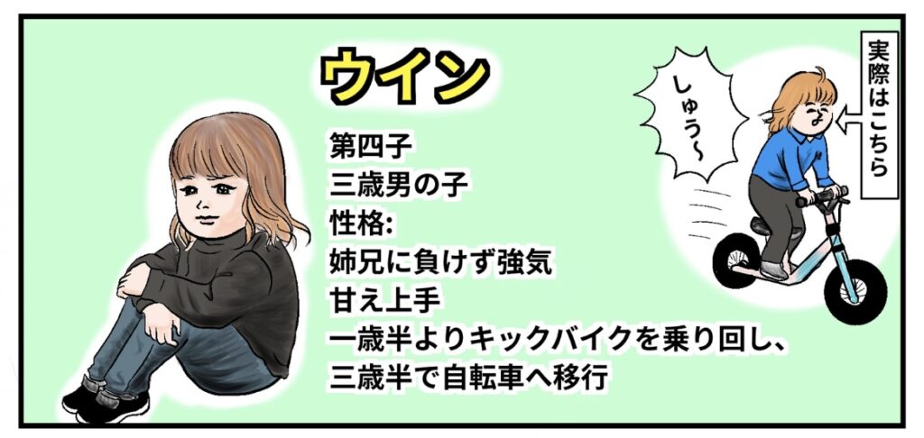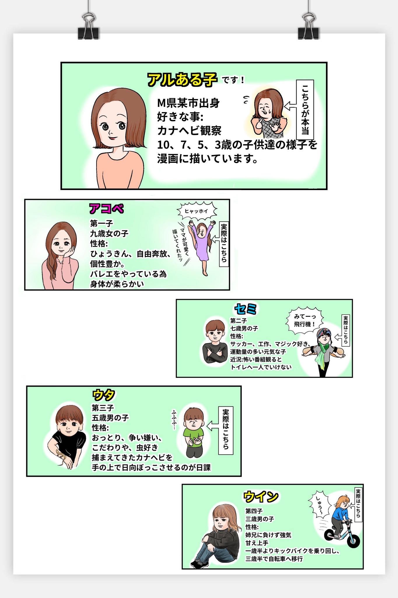 四人の子育ての様子を四コマ漫画にした「我が家の四姉弟」を、